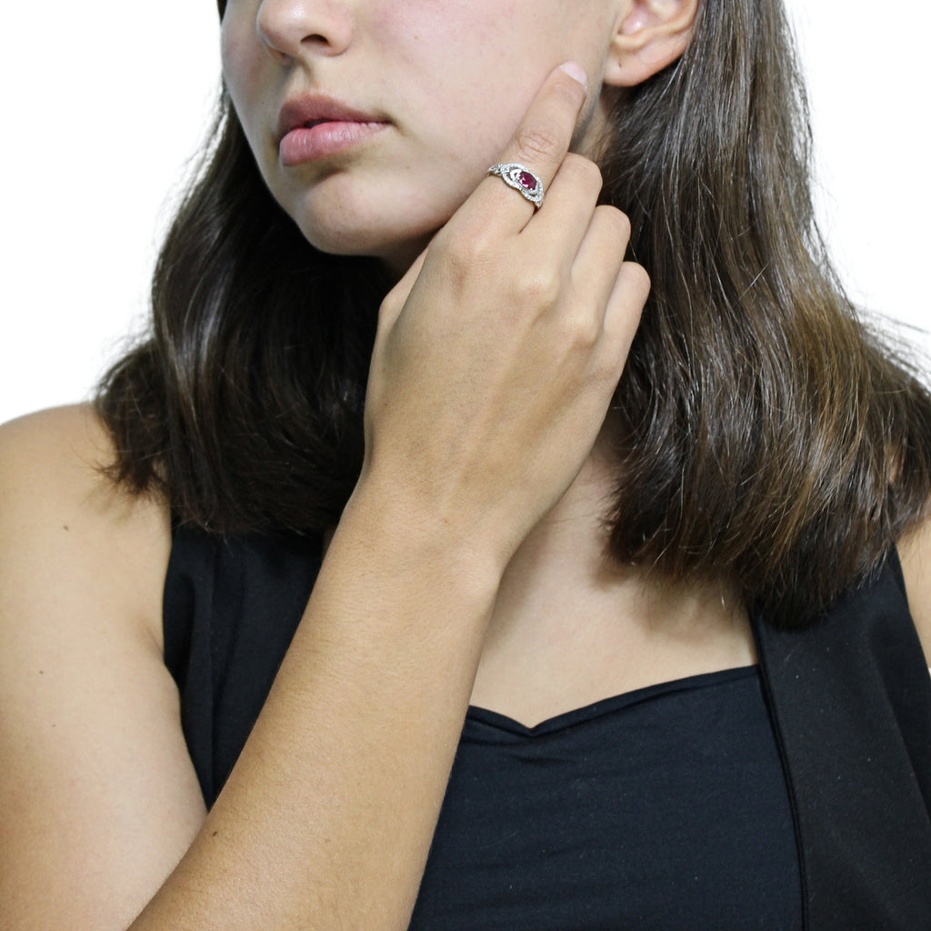 Anillo de Óvalo de Piedras Preciosas con Circonia