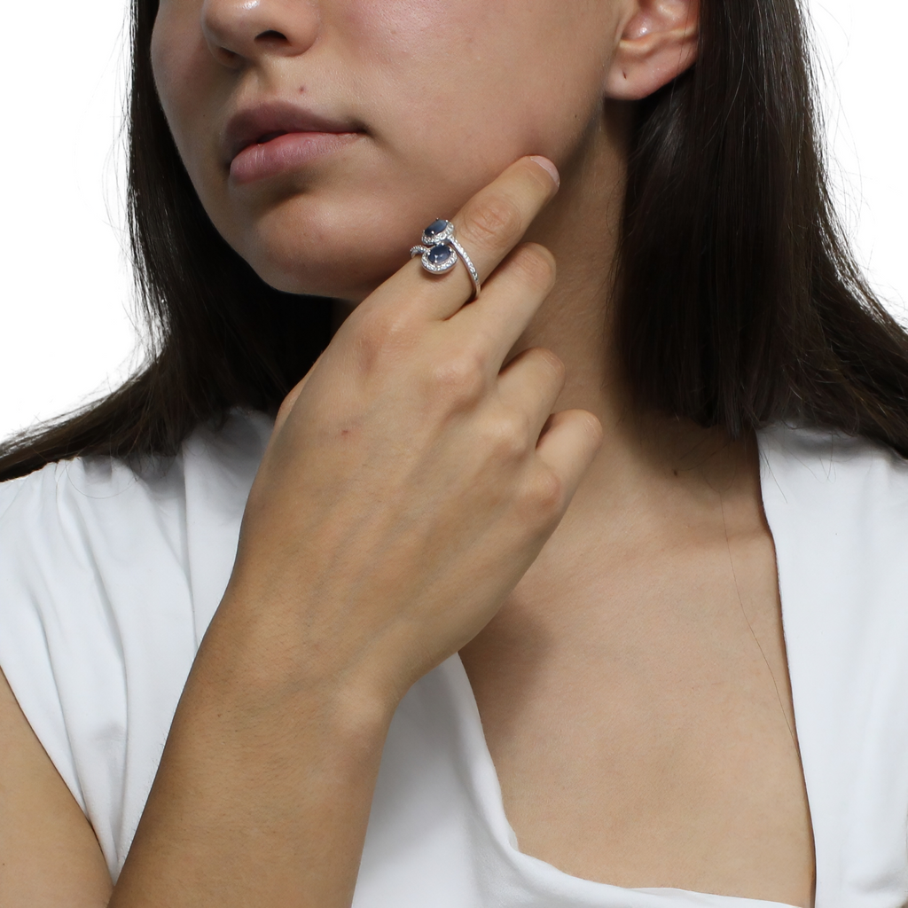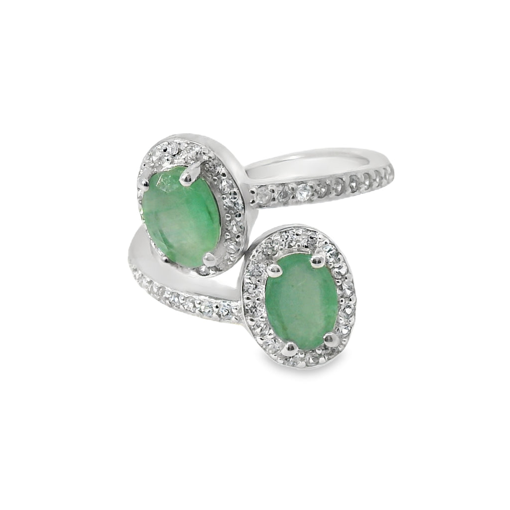 Anillo Piedra Natural Ovalos con Circonias Alrededor