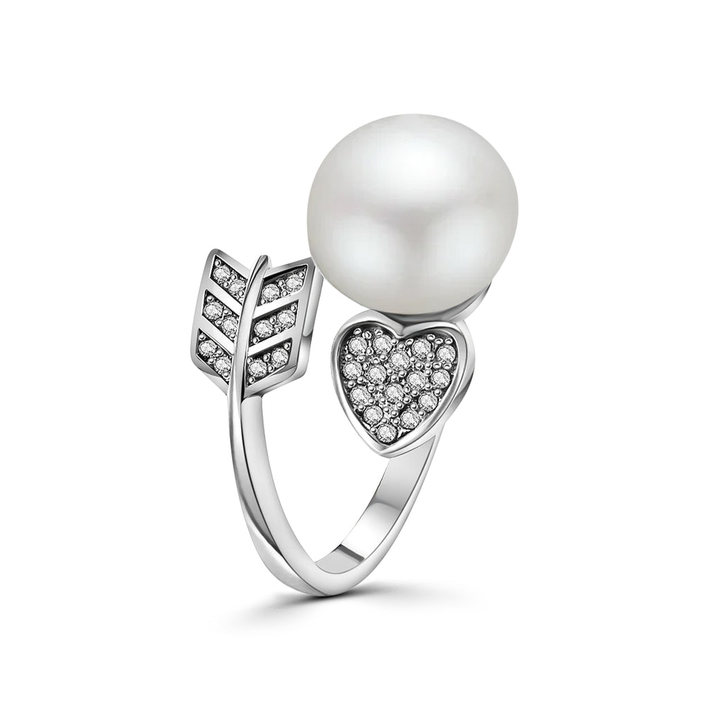 Anillo Corazón y Flecha De Plata Con Perla