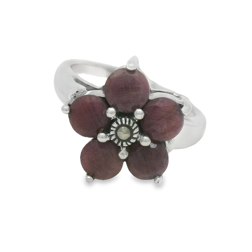 Anillo Flor Con Marquesita y Piedras Preciosas