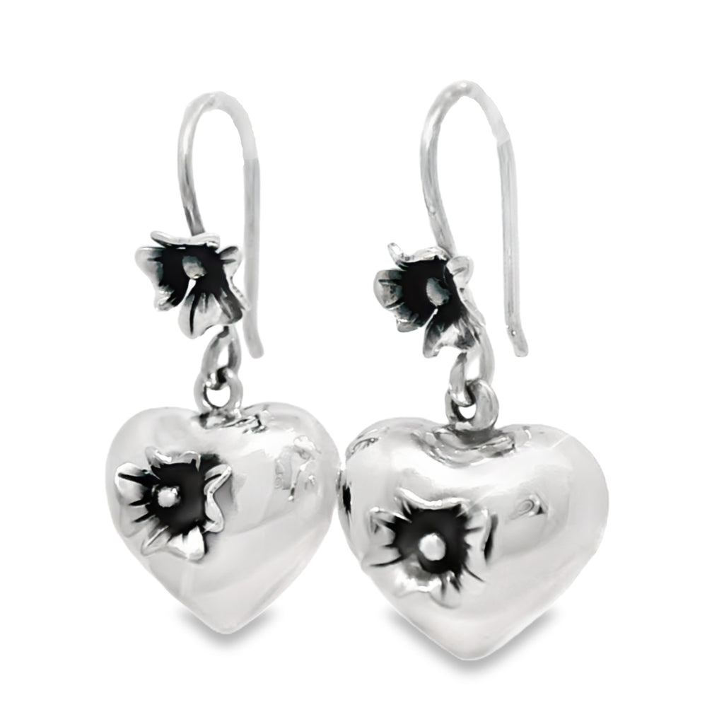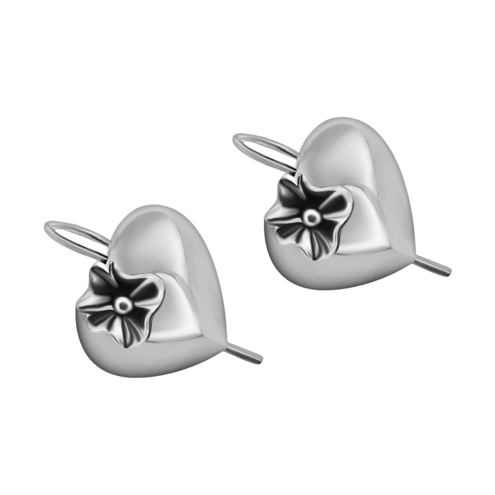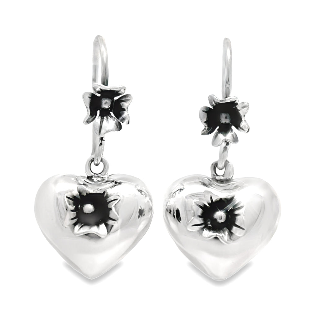 Aretes De Corazón Inflado Con Flor