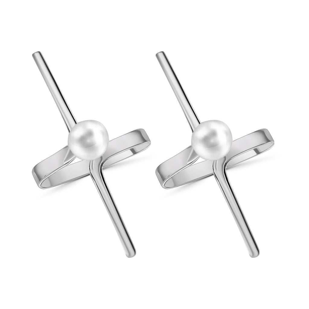 Arete Cruz De Plata Con Perla