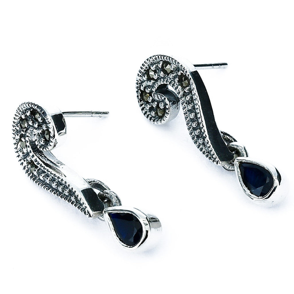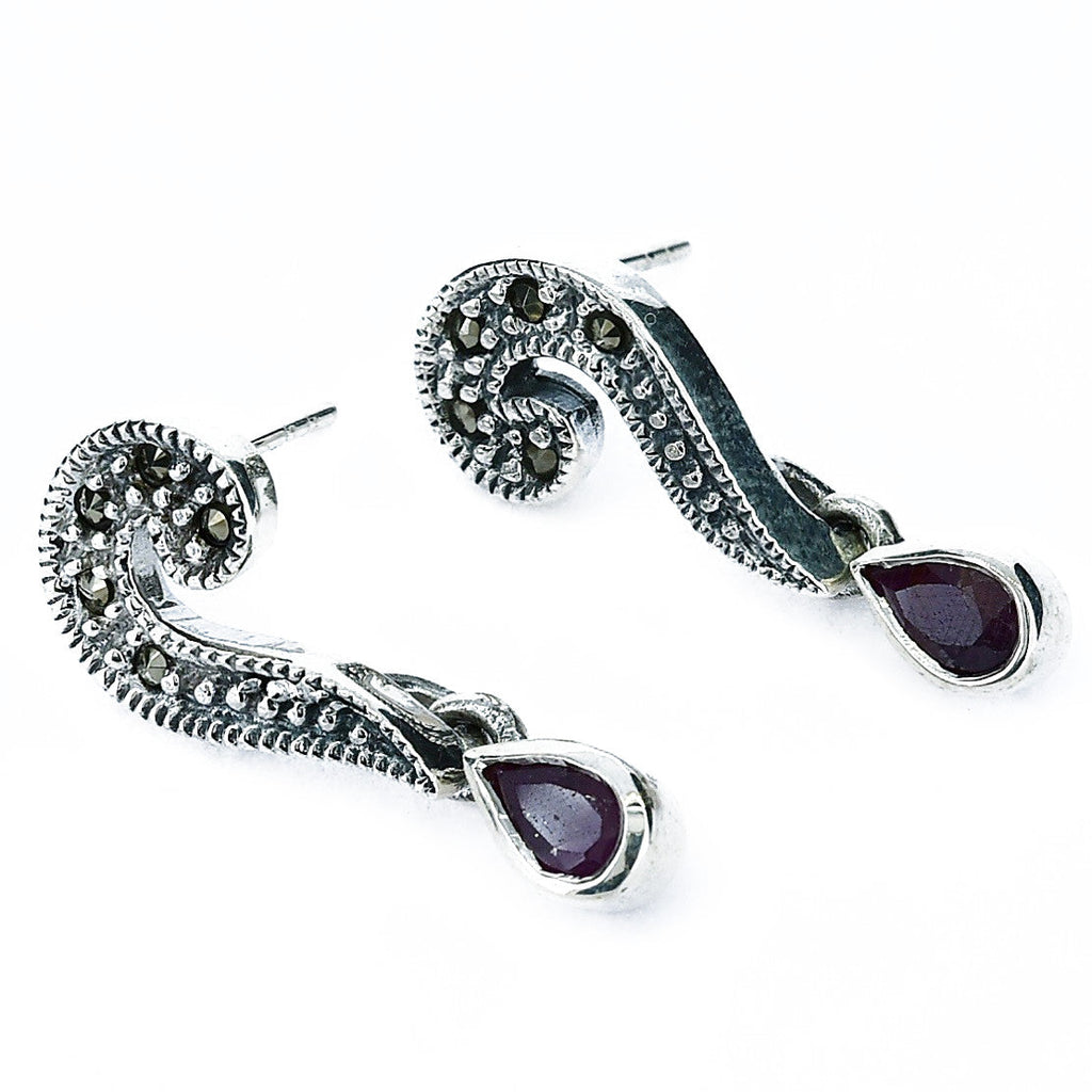 Aretes De Marquesita y Piedras Preciosas De Plata
