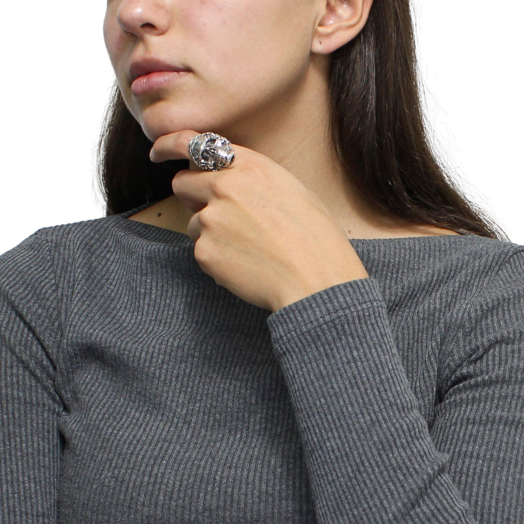 Anillo De Cráneo Plata Oxidada