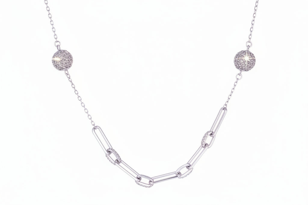 Collar De Plata Con Circonia Eslabón Con Circulos
