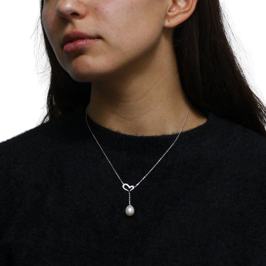 Collar Corazón con Perla Colgante