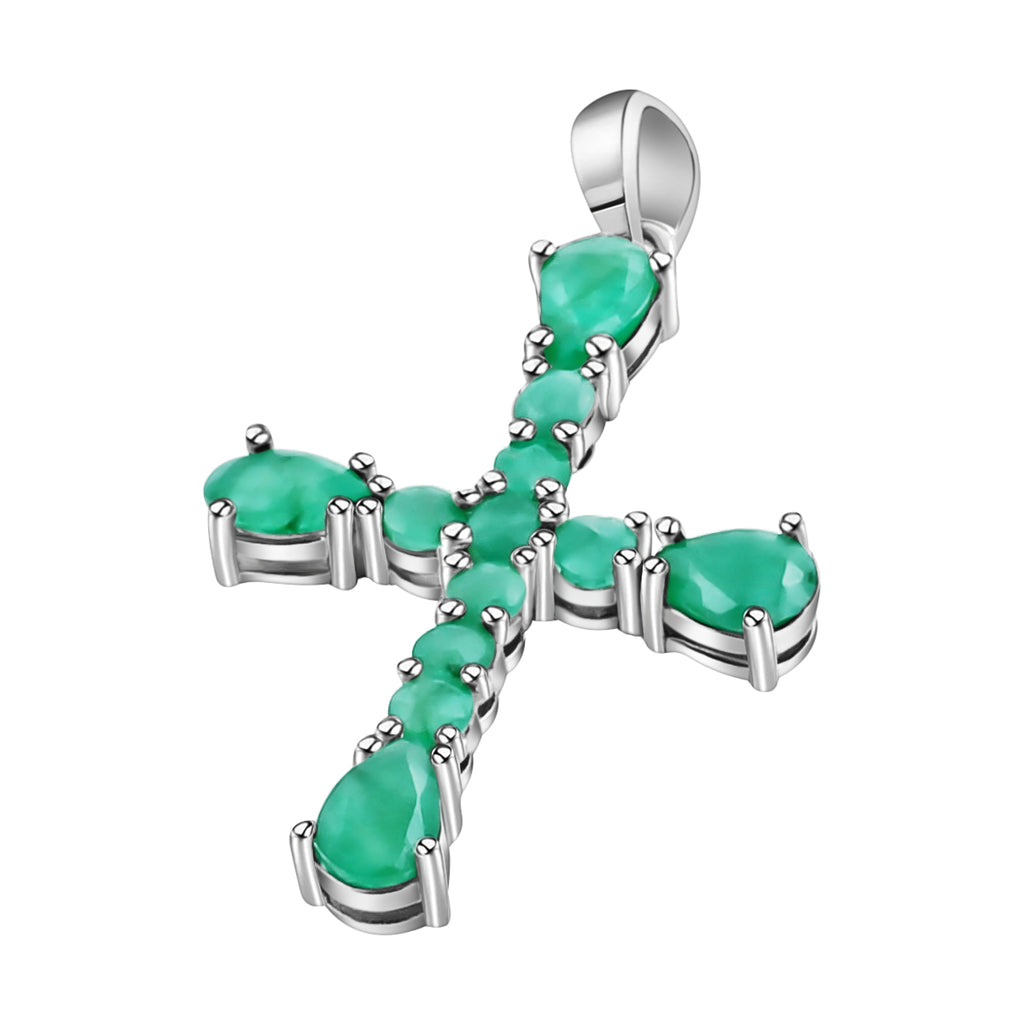 Cruz De Plata Con Piedras Preciosas
