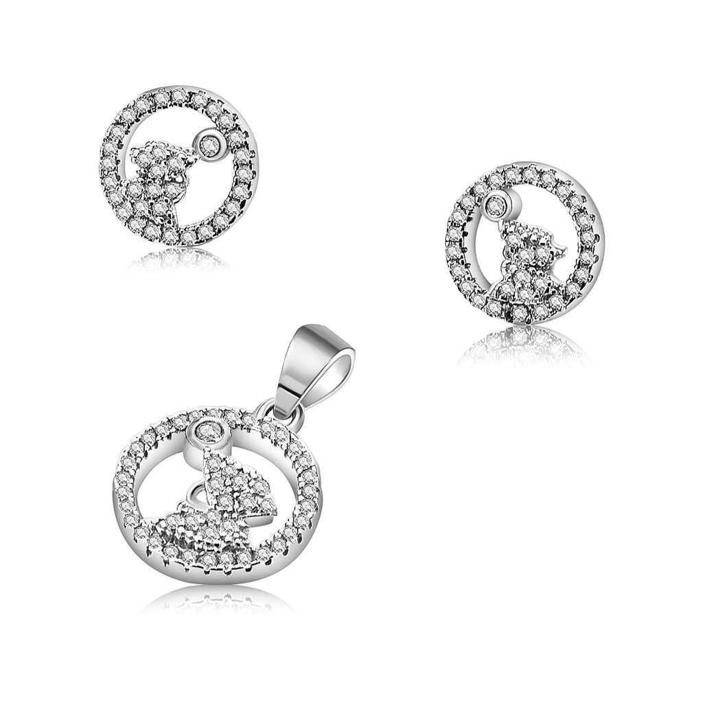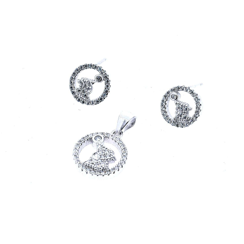 Delicado y elegante juego de arete y dije de nuestro material característico plata .925 y circonia. Antiguamente la mariposa era emblema del alma, también es símbolo de renacer.