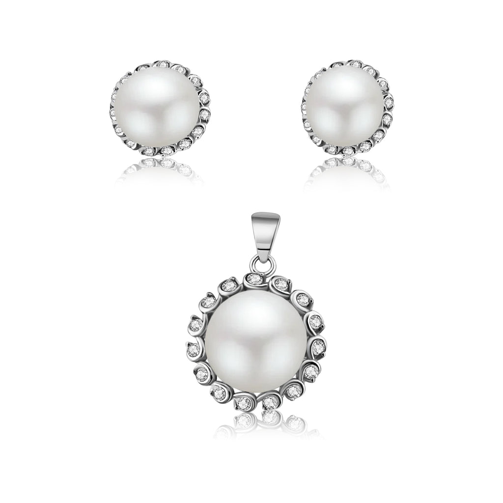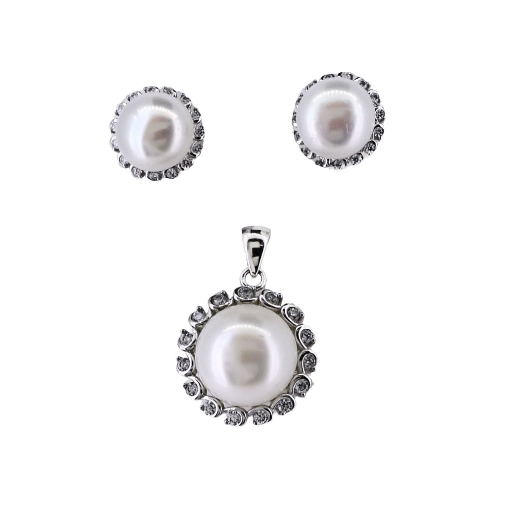 Juego De Plata Con Perla Y Circonia
