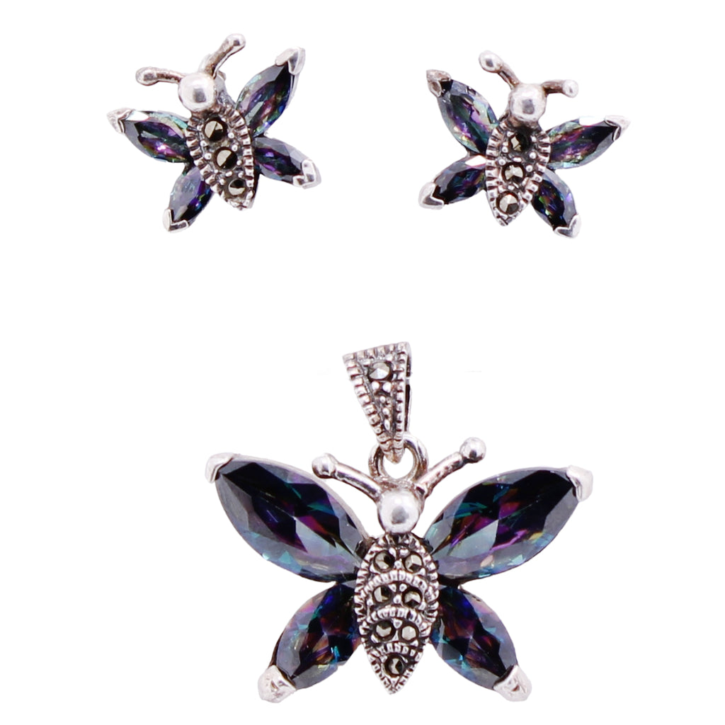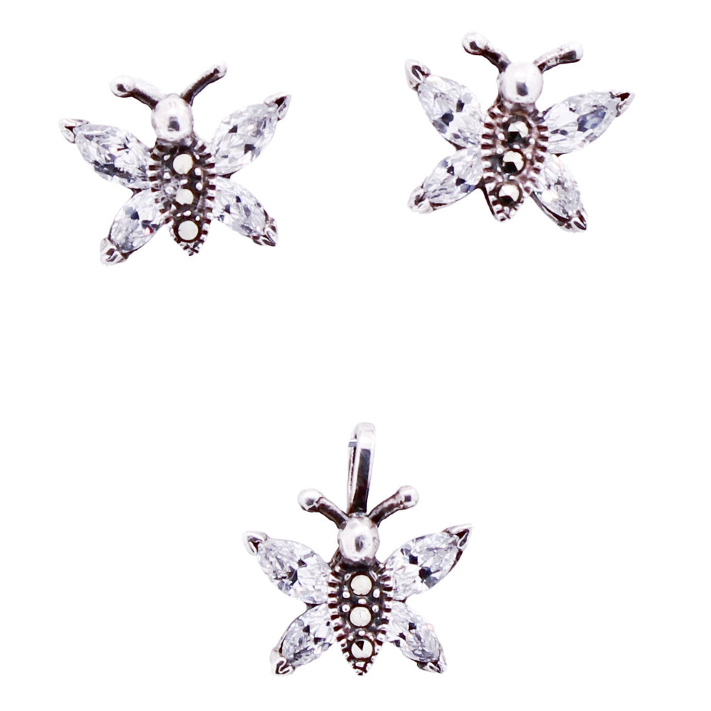 Juego De Plata Mariposa Con Marquesita Y Circonia