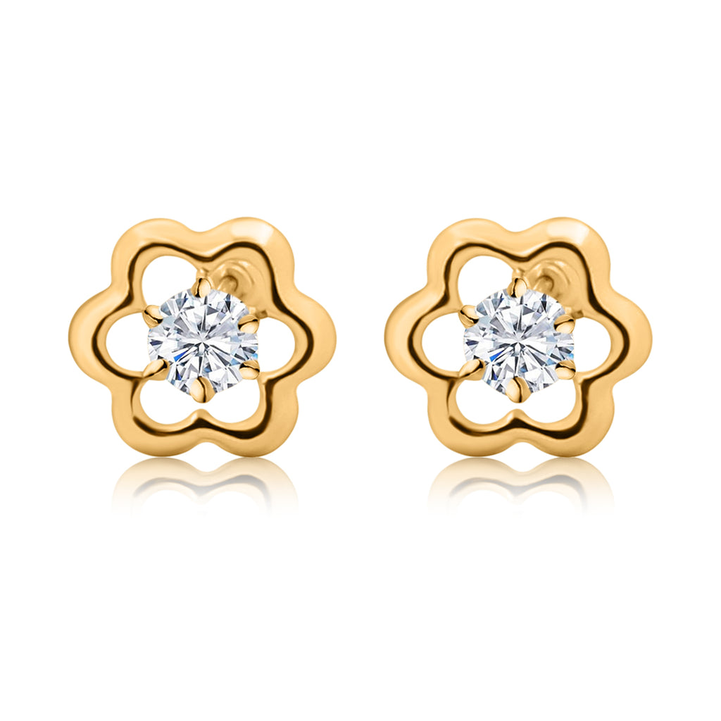 Aretes De Oro Flor Con Circonia