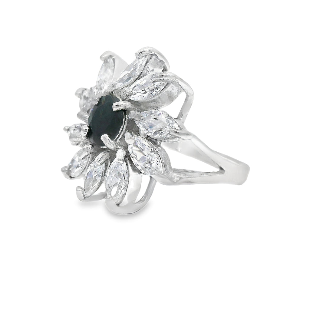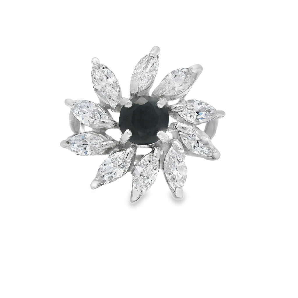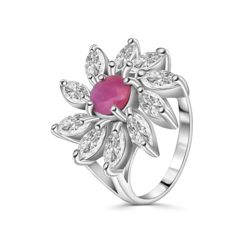 Plata .925 certificada, circonias y zafiro, esmeralda o rubí semi opaco