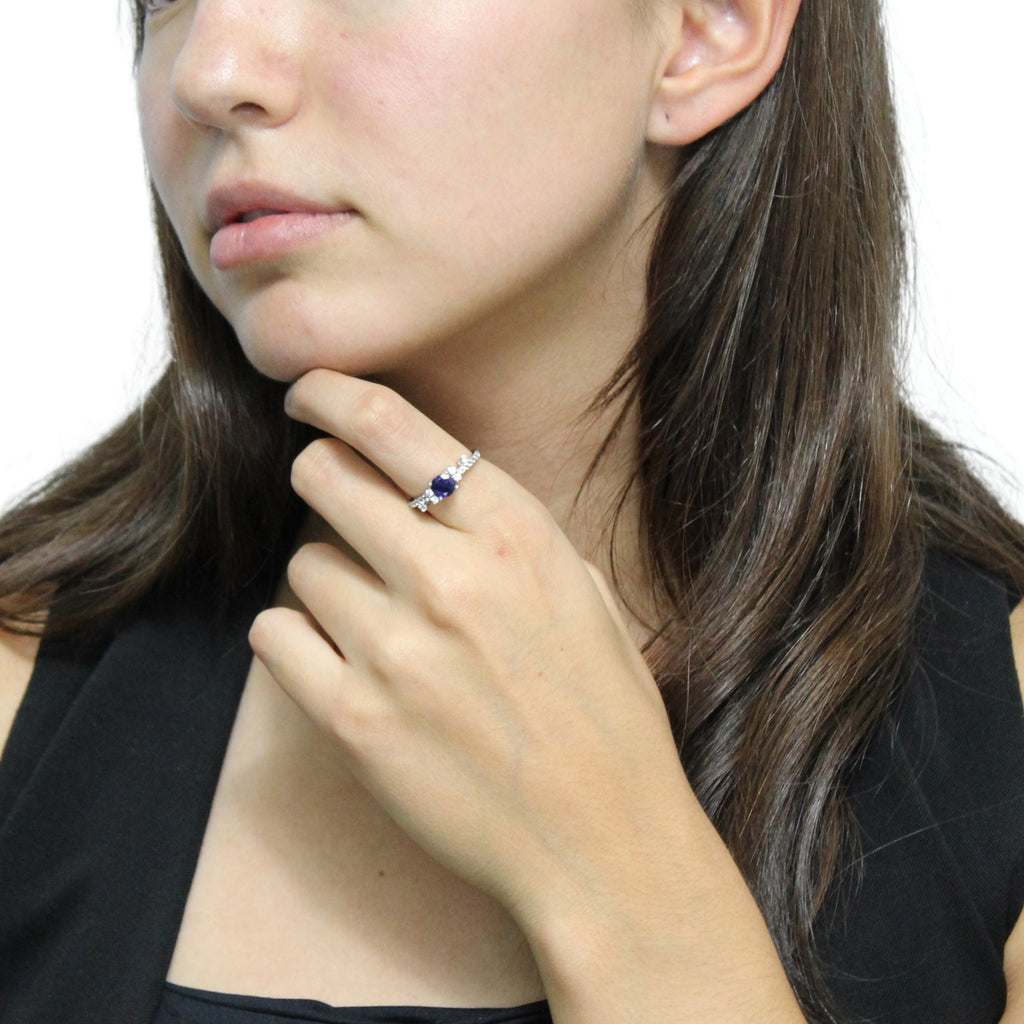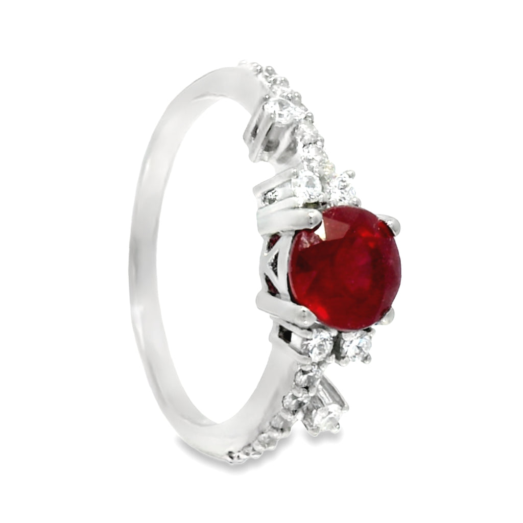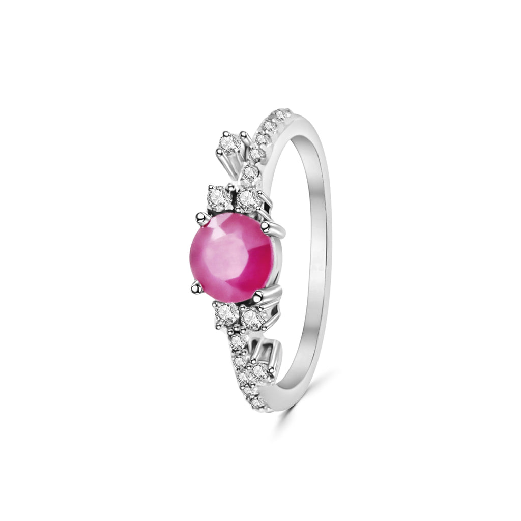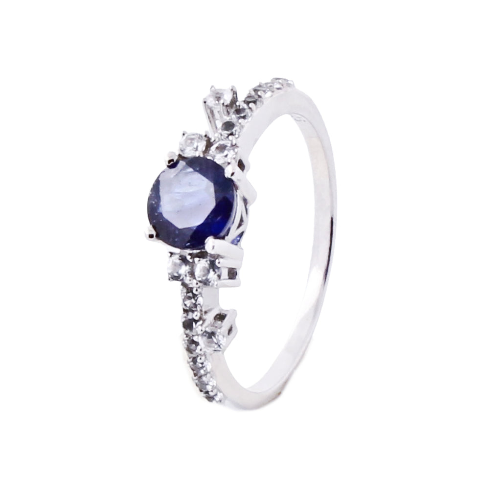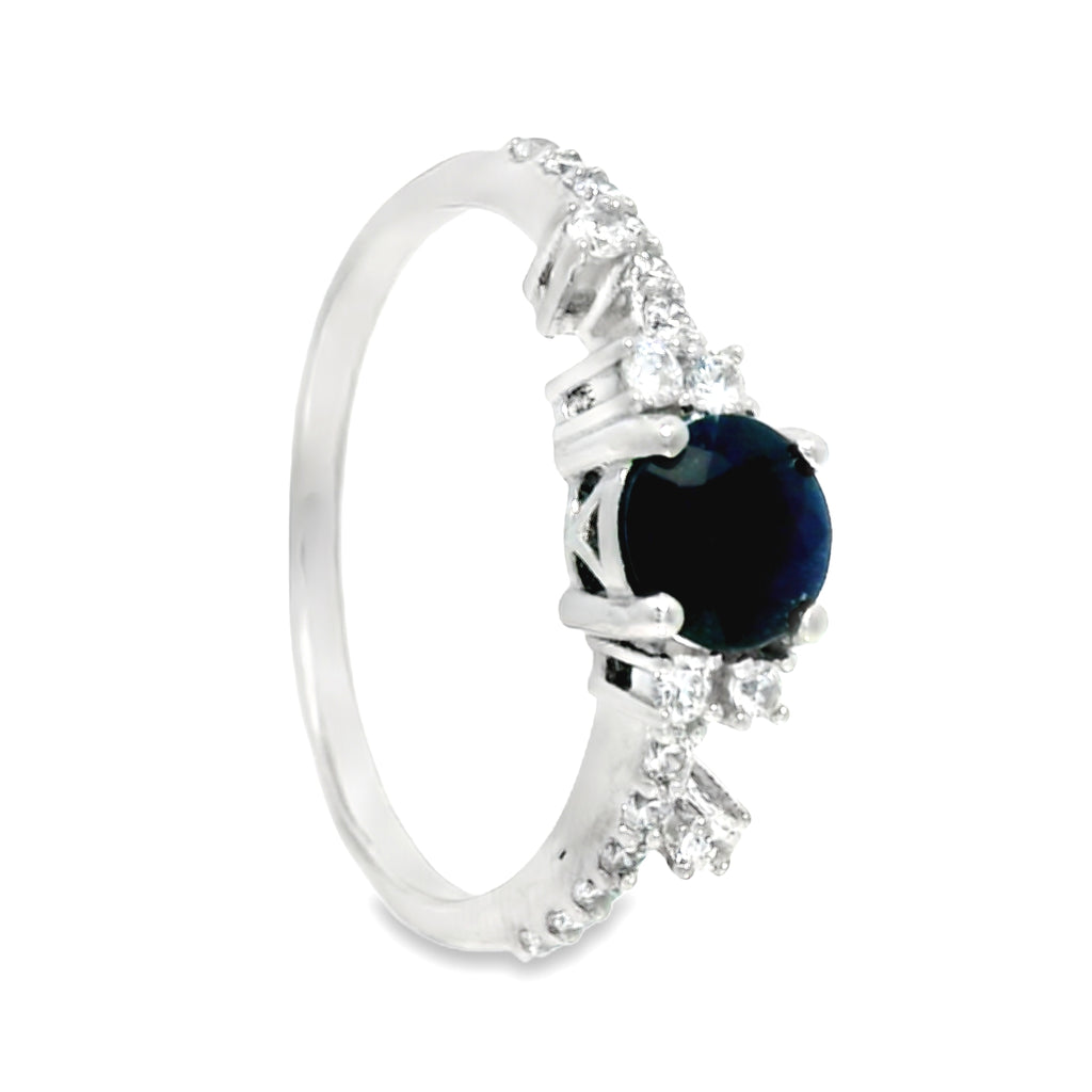 Anillo Solitario De Plata Con Piedra Natural Y Circonia