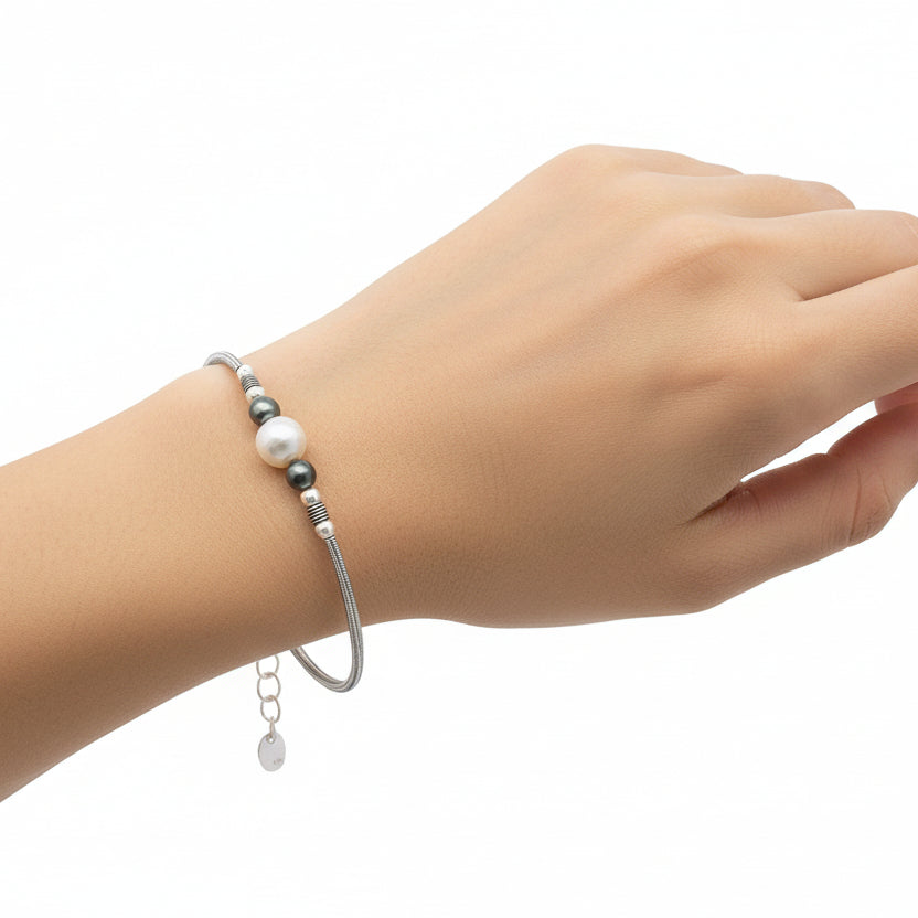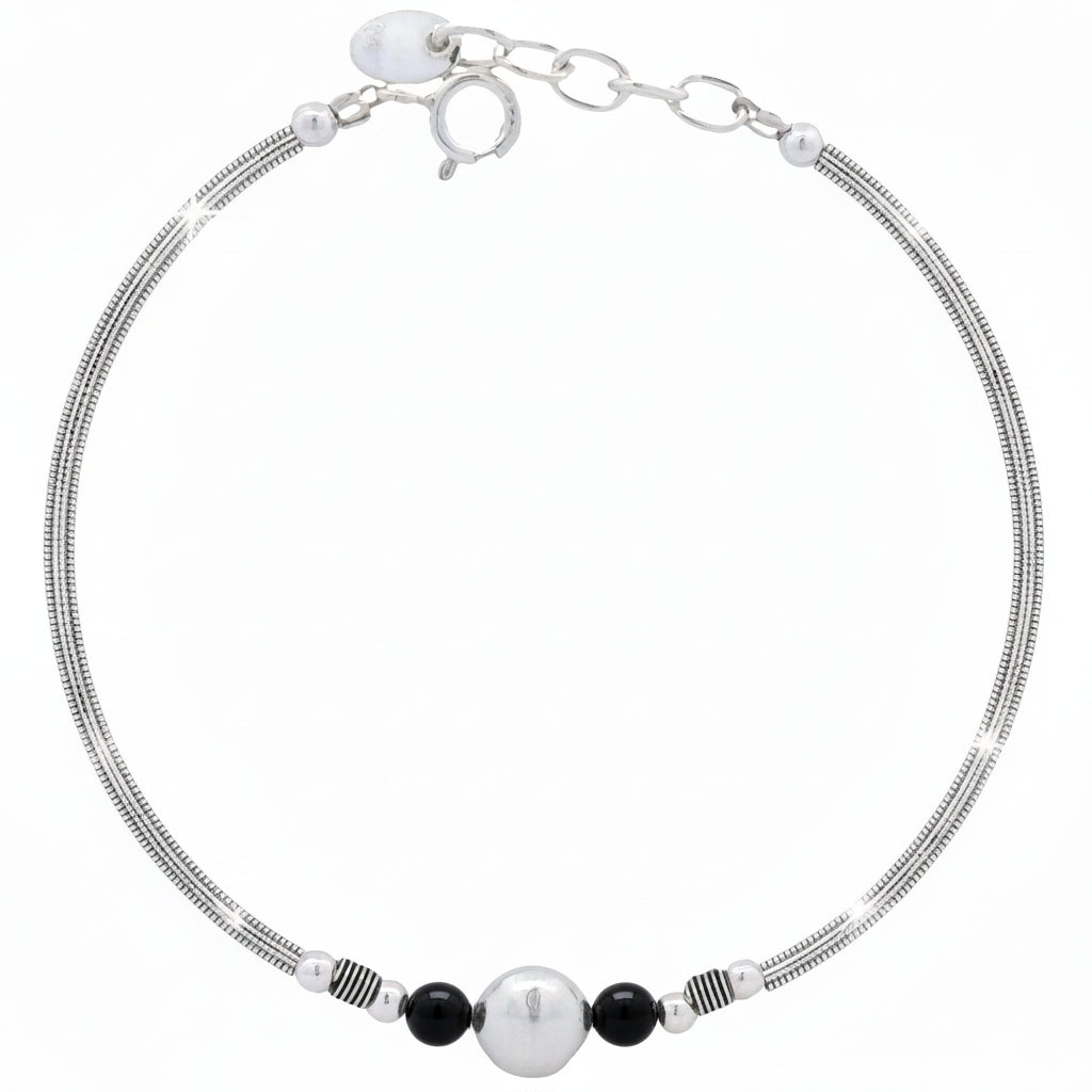 Pulsera Rigida de Plata con Cuenca