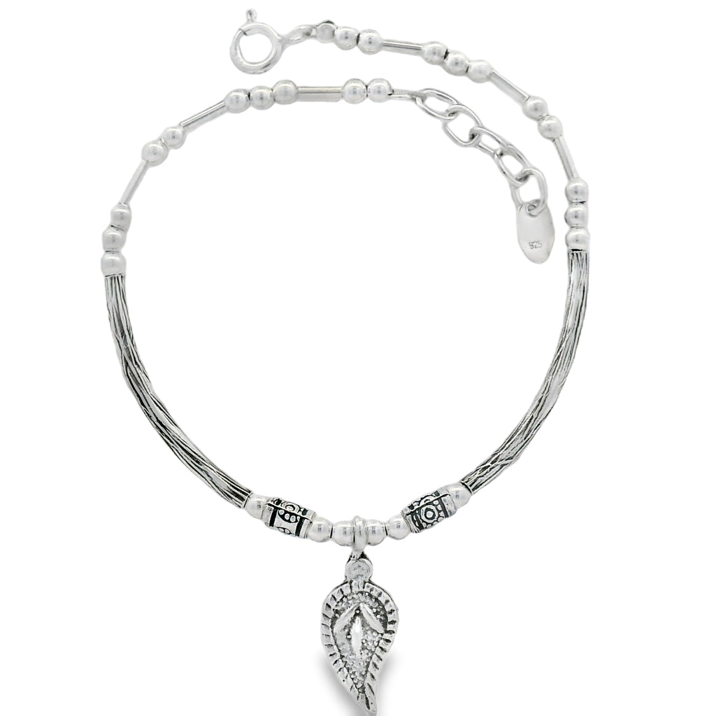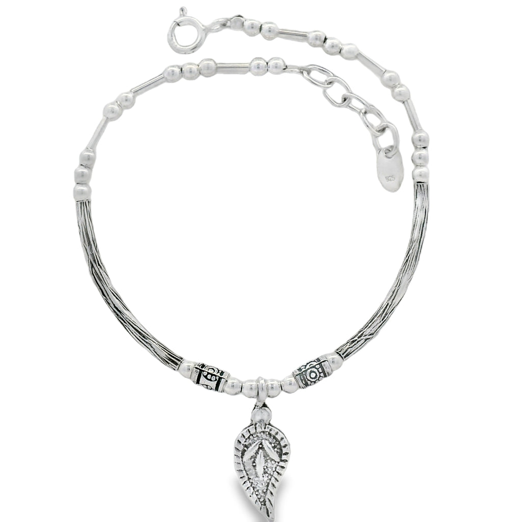 Pulsera Rigida de Plata con Dije de Hoja