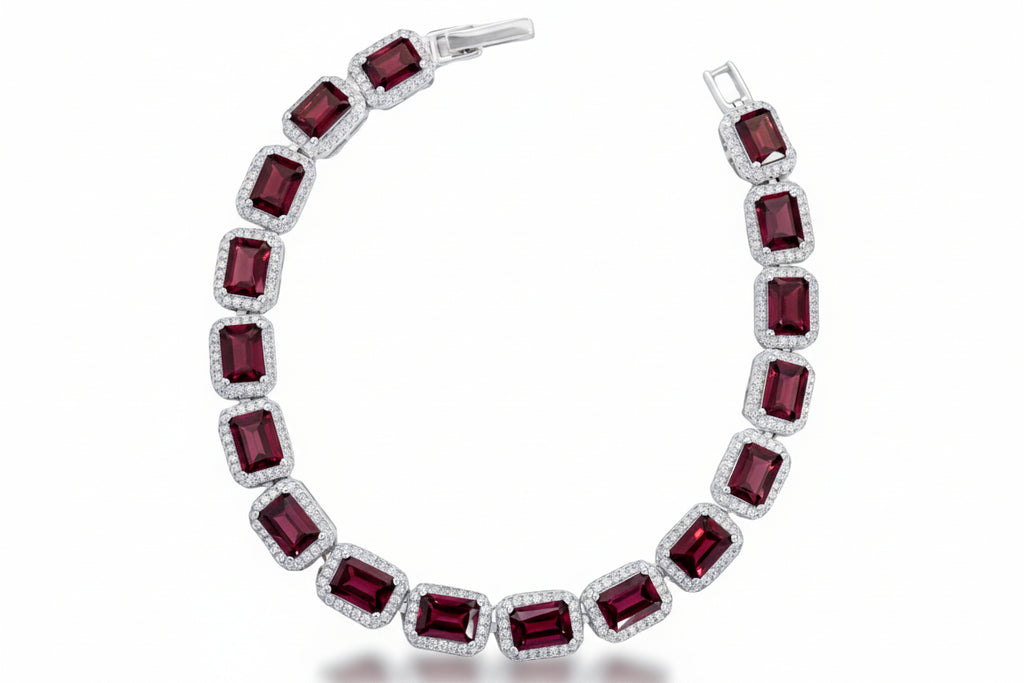 Pulsera de Granate Rectangular con Circonias